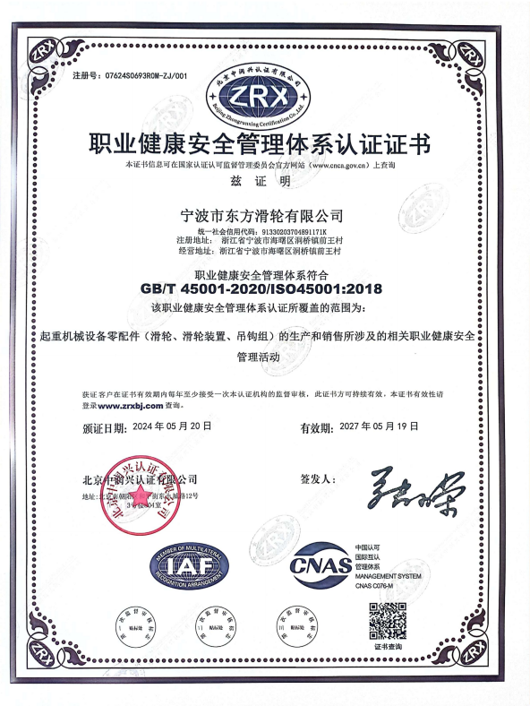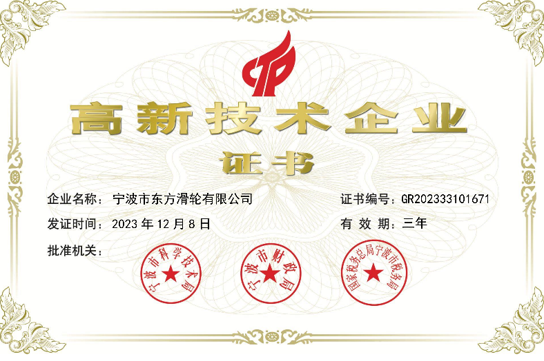 寧波市東方滑輪有限公司(簡稱寧波東方滑輪),成立于1998年,位于浙江省寧波市海曙區(qū),是一家專業(yè)從事鋼絲索相關滑輪傳動裝置的開發(fā)研究、創(chuàng)新設計及精密制造的廠家。2004年首批通過了ISO9001質量管理體系認證,2021年由中國船級社頒發(fā)了《CCS工廠認可證書》,公司還擁有多項國際領先的發(fā)明和實用新型專利,參與起草國家機械部標準認定《JB-T8398-1996雙幅板壓制滑輪》,現(xiàn)有員工逾百人。